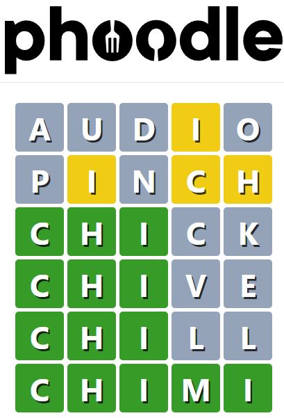 Phoodle is another Wordle-inspired game we have found, which is another food-related game. Players need to guess the five-letter food-related term, which can be anything from appliances to famous chefs and more.