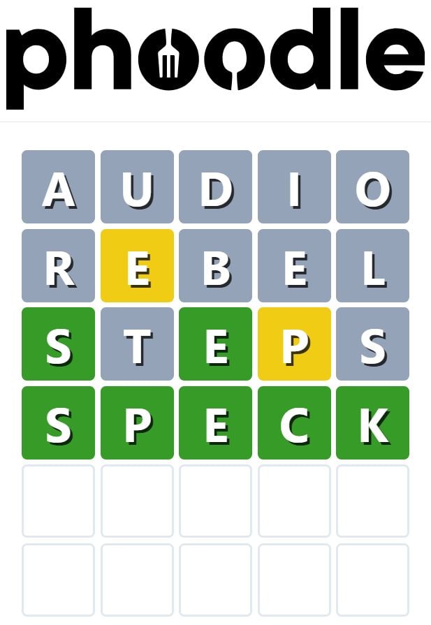 Phoodle is another Wordle-inspired game we have found, which is another food-related game. Players need to guess the five-letter food-related term, which can be anything from appliances to famous chefs and more.
