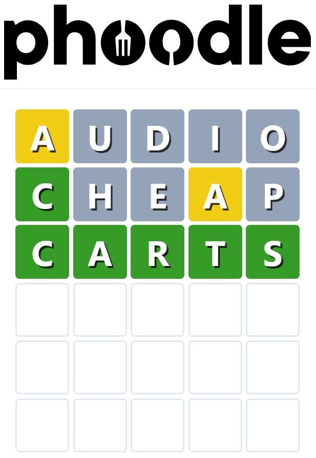 Phoodle is another Wordle-inspired game we have found, which is another food-related game. Players need to guess the five-letter food-related term, which can be anything from appliances to famous chefs and more.