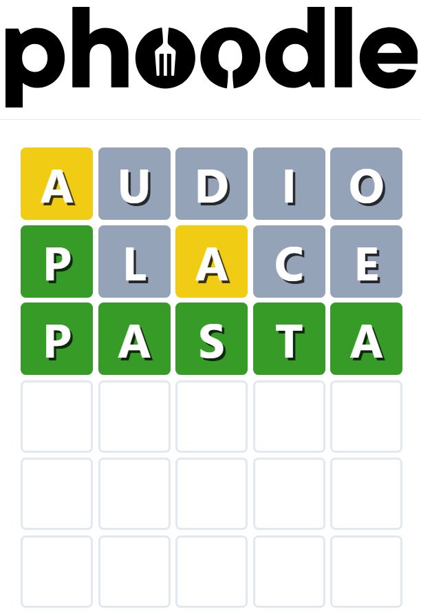 Phoodle is another Wordle-inspired game we have found, which is another food-related game. Players need to guess the five-letter food-related term, which can be anything from appliances to famous chefs and more.