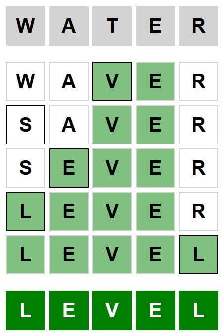 The starter word for the Weaver puzzle released today, August 6th 2025, is ‘WATER‘ and the end word is ‘LEVEL‘.