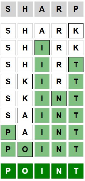 The starter word for the Weaver puzzle released today, December 14th 2024, is ‘SHARP‘ and the end word is ‘POINT‘.