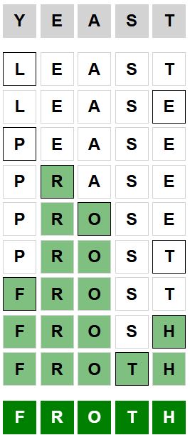 The starter word for the Weaver puzzle released today, December 15th 2024, is ‘YEAST‘ and the end word is ‘FROST‘.