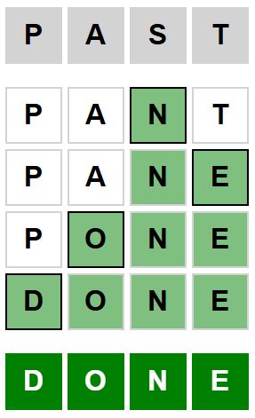 The starter word for the Weaver puzzle released today, December 16th 2024, is ‘PAST‘ and the end word is ‘DONE‘.