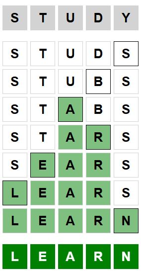 The starter word for the Weaver puzzle released today, December 20th 2024, is ‘STUDY‘ and the end word is ‘LEARN‘.