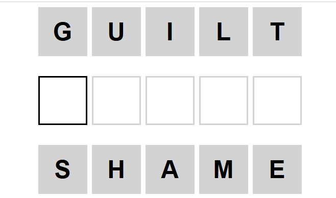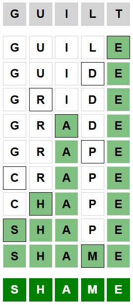 The starter word for the Weaver puzzle released today, December 22nd 2024, is ‘GUILT‘ and the end word is ‘SHAME‘.