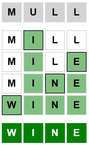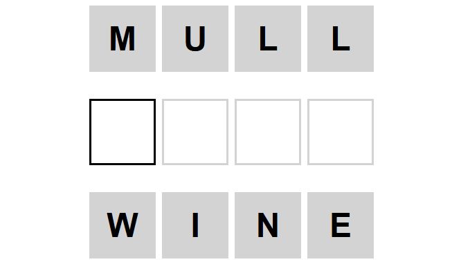 The starter word for the Weaver puzzle released today, December 23rd 2024, is ‘MULL‘ and the end word is ‘WINE‘.