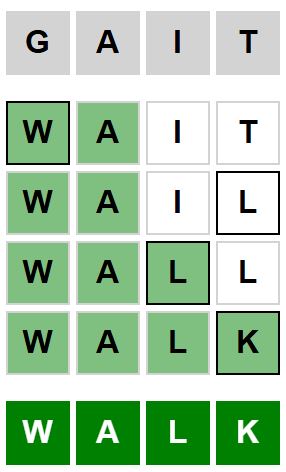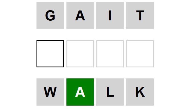 The starter word for the Weaver puzzle released today, December 9th 2024, is ‘GAIT‘ and the end word is ‘WALK‘.