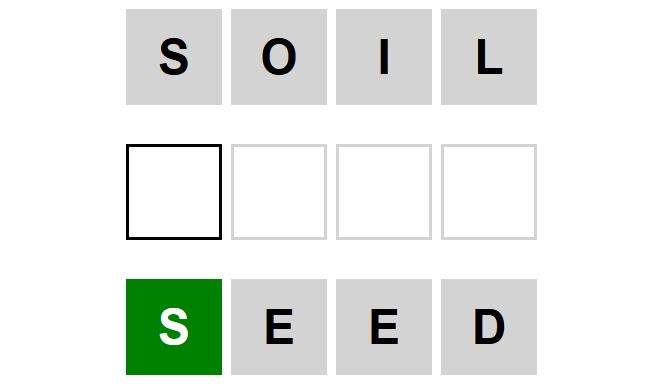 The starter word for the Weaver puzzle released today, February 19th 2024, is ‘SOIL‘ and the end word is ‘SEED‘.