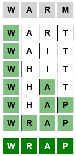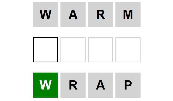 The starter word for the Weaver puzzle released today, February 20th 2024, is ‘WARM‘ and the end word is ‘WRAP‘.