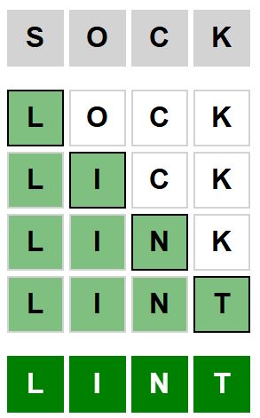 The starter word for the Weaver puzzle released today, February 24th 2024, is ‘SOCK‘ and the end word is ‘LINT‘.