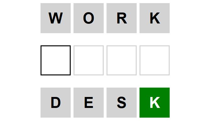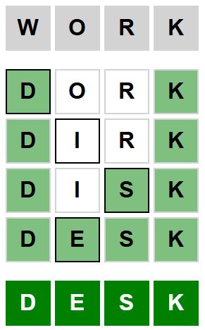 The starter word for the Weaver puzzle released today, January 13th 2024, is ‘WORK‘ and the end word is ‘DESK‘.