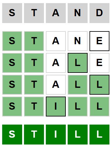 The starter word for the Weaver puzzle released today, January 14th 2024, is ‘STAND‘ and the end word is ‘STILL‘.