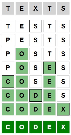 The starter word for the Weaver puzzle released today, January 17th 2024, is ‘TEXTS‘ and the end word is ‘CODEX‘.