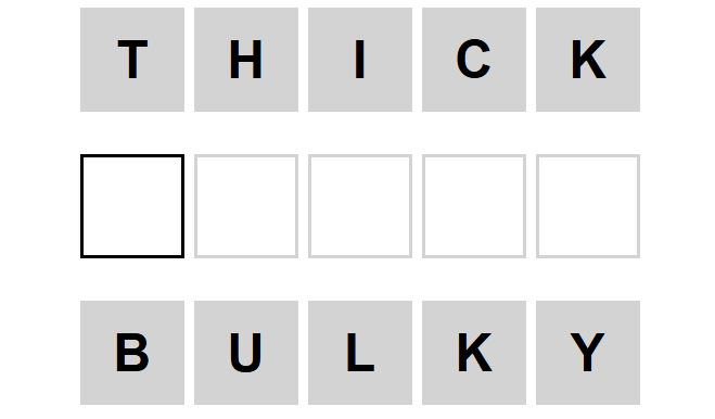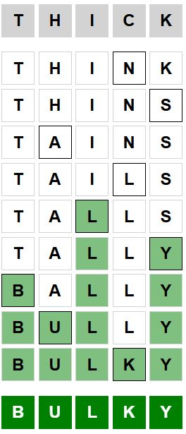 The starter word for the Weaver puzzle released today, January 19th 2024, is ‘THICK‘ and the end word is ‘BULKY‘.