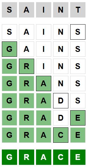The starter word for the Weaver puzzle released today, January 25th 2024, is ‘SAINT‘ and the end word is ‘GRACE‘.