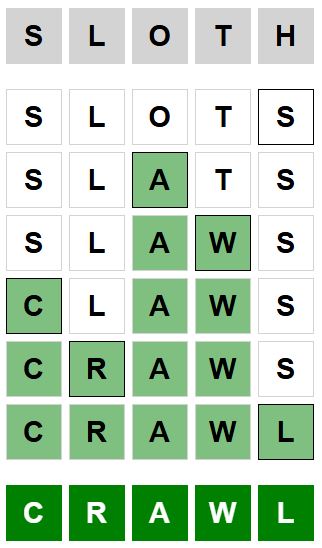 The starter word for the Weaver puzzle released today, January 31st 2024, is ‘SLOTH‘ and the end word is ‘CRAWL‘.