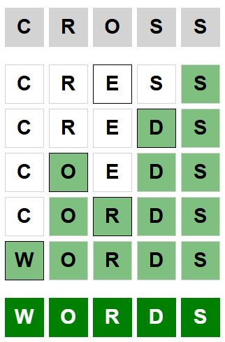 The starter word for the Weaver puzzle released today, January 8th 2024, is ‘CROSS‘ and the end word is ‘WORDS‘.