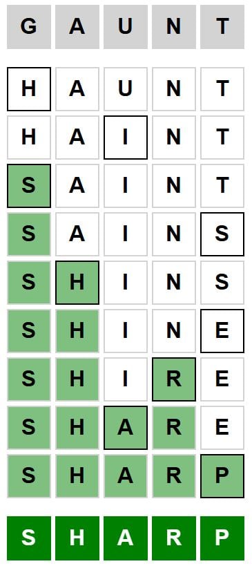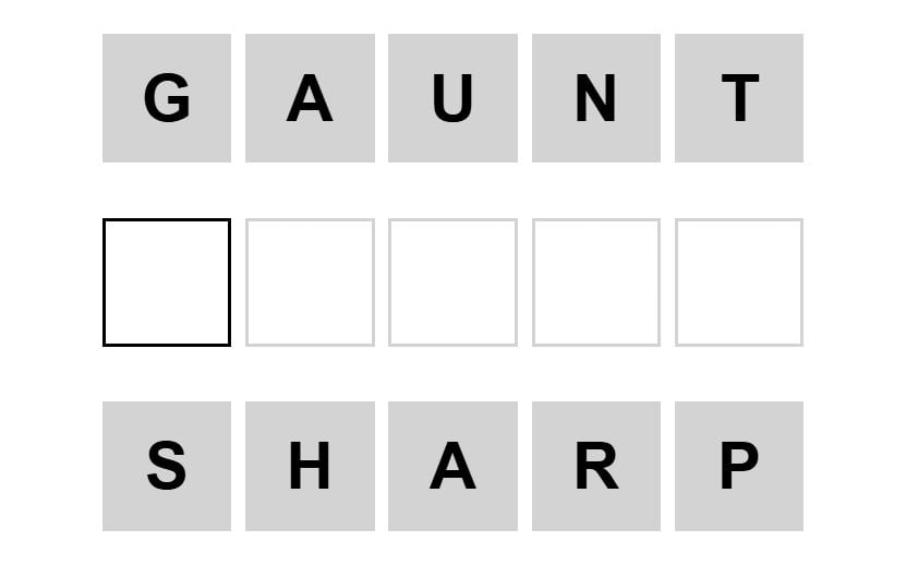 The starter word for the Weaver puzzle released today, July 6th 2025, is ‘GAUNT‘ and the end word is ‘SHARP‘.