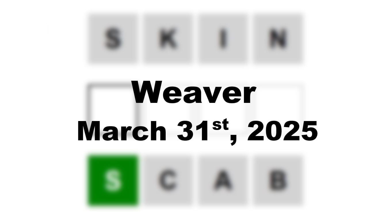 The starter word for the Weaver puzzle released today, March 31st 2025, is ‘SKIN‘ and the end word is ‘SCAB‘.