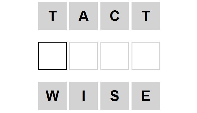 The starter word for the Weaver puzzle released today, May 13th 2025, is ‘TACT‘ and the end word is ‘WISE‘.