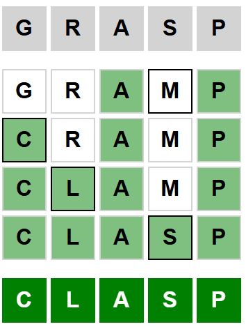 The starter word for the Weaver puzzle released today, November 12th 2024, is ‘GRASP‘ and the end word is ‘CLASP‘.