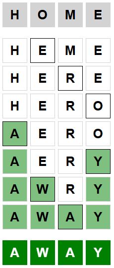 The starter word for the Weaver puzzle released today, November 16th 2024, is ‘HOME‘ and the end word is ‘AWAY‘.