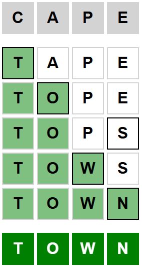 The starter word for the Weaver puzzle released today, November 19th 2024, is ‘CAPE‘ and the end word is ‘TOWN‘.
