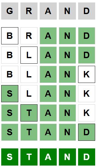 The starter word for the Weaver puzzle released today, November 1st 2024, is ‘GRAND‘ and the end word is ‘STAND‘.