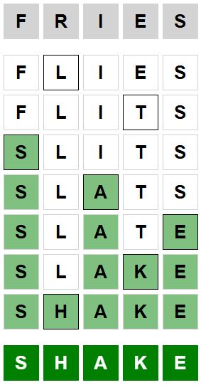 The starter word for the Weaver puzzle released today, November 22nd 2024, is ‘FRIES‘ and the end word is ‘SHAKE‘.