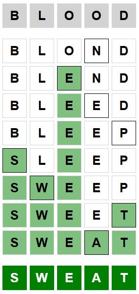 The starter word for the Weaver puzzle released today, November 23rd 2024, is ‘BLOOD‘ and the end word is ‘SWEAT‘.