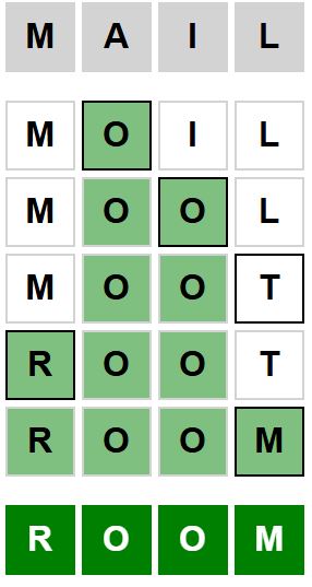 The starter word for the Weaver puzzle released today, November 27th 2024, is ‘MAIL‘ and the end word is ‘ROOM‘.