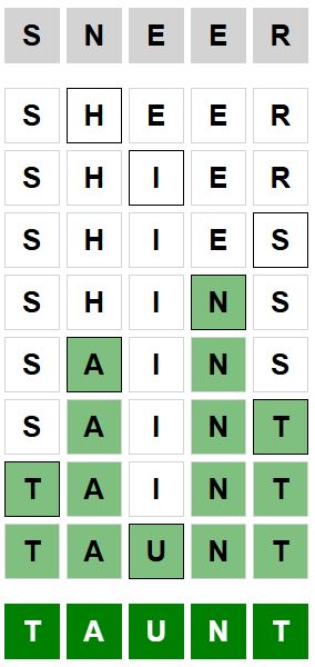 The starter word for the Weaver puzzle released today, November 30th 2024, is ‘SNEER‘ and the end word is ‘TAUNT‘.