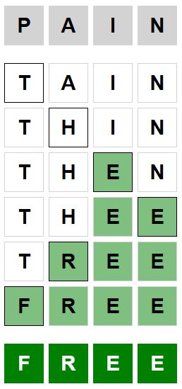 The starter word for the Weaver puzzle released today, November 7th 2024, is ‘PAIN‘ and the end word is ‘FREE‘.