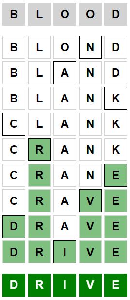 The starter word for the Weaver puzzle released today, October 12th 2024, is ‘BLOOD‘ and the end word is ‘DRIVE‘.