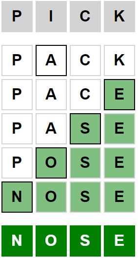 The starter word for the Weaver puzzle released today, October 15th 2024, is ‘PICK‘ and the end word is ‘NOSE‘.