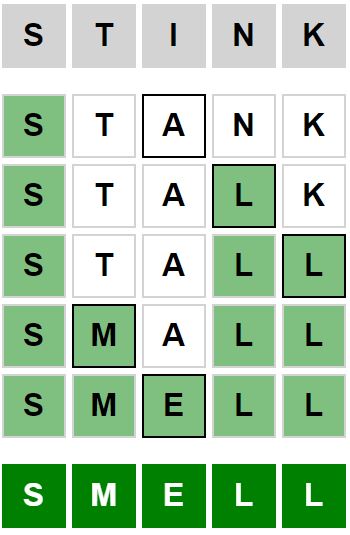 The starter word for the Weaver puzzle released today, October 16th 2024, is ‘STINK‘ and the end word is ‘SMELL‘.