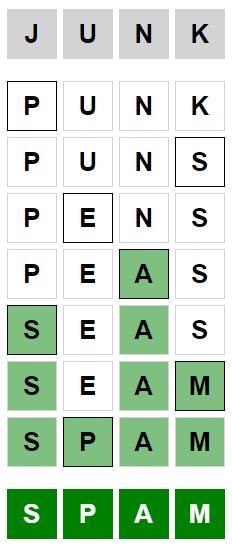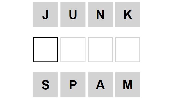 The starter word for the Weaver puzzle released today, October 25th 2024, is ‘JUNK‘ and the end word is ‘SPAM‘.