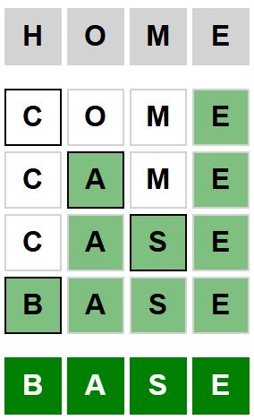 The starter word for the Weaver puzzle released today, October 28th 2024, is ‘HOME‘ and the end word is ‘BASE‘.