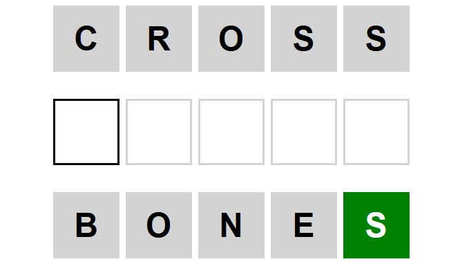 The starter word for the Weaver puzzle released today, October 31st 2024, is ‘CROSS‘ and the end word is ‘BONES‘.