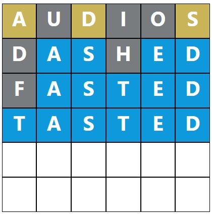 When you make a guess, the colours of the tiles will change, indicating whether the letters you guessed are in the answer and whether you have correctly placed them in the word. This game’s colours are grey, yellow, and blue, which have most likely been changed to distinguish itself further from the original Wordle.