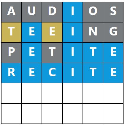 When you make a guess, the colours of the tiles will change, indicating whether the letters you guessed are in the answer and whether you have correctly placed them in the word. This game’s colours are grey, yellow, and blue, which have most likely been changed to distinguish itself further from the original Wordle.