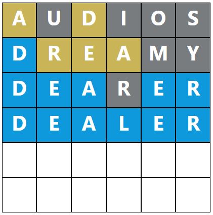 When you make a guess, the colours of the tiles will change, indicating whether the letters you guessed are in the answer and whether you have correctly placed them in the word. This game’s colours are grey, yellow, and blue, which have most likely been changed to distinguish itself further from the original Wordle.