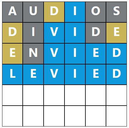 When you make a guess, the colours of the tiles will change, indicating whether the letters you guessed are in the answer and whether you have correctly placed them in the word. This game’s colours are grey, yellow, and blue, which have most likely been changed to distinguish itself further from the original Wordle.