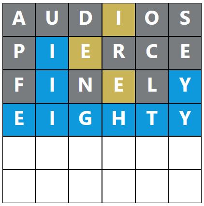 When you make a guess, the colours of the tiles will change, indicating whether the letters you guessed are in the answer and whether you have correctly placed them in the word. This game’s colours are grey, yellow, and blue, which have most likely been changed to distinguish itself further from the original Wordle.