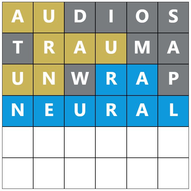 When you make a guess, the colours of the tiles will change, indicating whether the letters you guessed are in the answer and whether you have correctly placed them in the word. This game’s colours are grey, yellow, and blue, which have most likely been changed to distinguish itself further from the original Wordle.