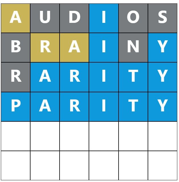 When you make a guess, the colours of the tiles will change, indicating whether the letters you guessed are in the answer and whether you have correctly placed them in the word. This game’s colours are grey, yellow, and blue, which have most likely been changed to distinguish itself further from the original Wordle.