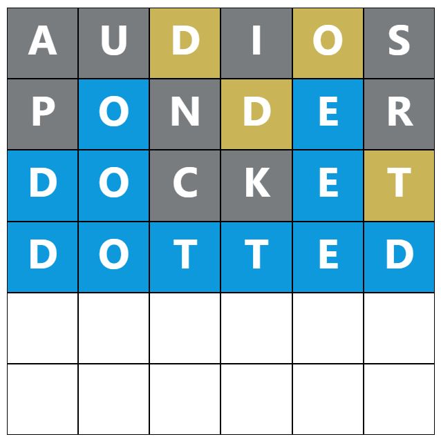 When you make a guess, the colours of the tiles will change, indicating whether the letters you guessed are in the answer and whether you have correctly placed them in the word. This game’s colours are grey, yellow, and blue, which have most likely been changed to distinguish itself further from the original Wordle.