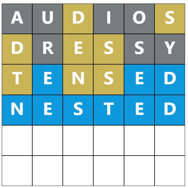 When you make a guess, the colours of the tiles will change, indicating whether the letters you guessed are in the answer and whether you have correctly placed them in the word. This game’s colours are grey, yellow, and blue, which have most likely been changed to distinguish itself further from the original Wordle.