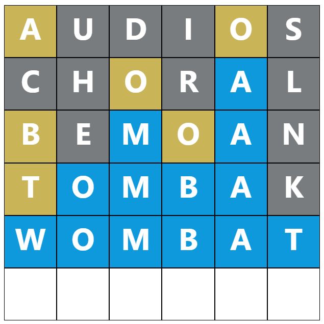 When you make a guess, the colours of the tiles will change, indicating whether the letters you guessed are in the answer and whether you have correctly placed them in the word. This game’s colours are grey, yellow, and blue, which have most likely been changed to distinguish itself further from the original Wordle.